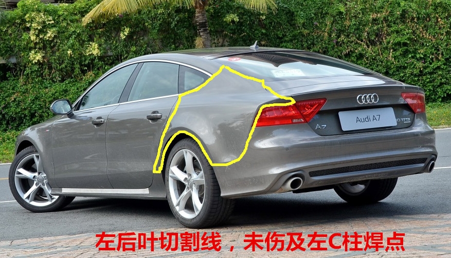 直接切入標(biāo)題,這臺(tái)車事故主要是集中在左后部,整個(gè)左后葉子板已經(jīng)切割。